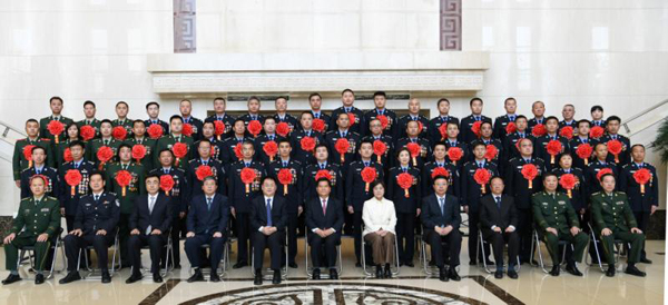 自治区领导李纪恒、布小林、任亚平、李佳、罗永纲、杜梓、马明与全国公安系统英雄模范立功集体我区受奖单位代表和个人合影。内蒙古日报社融媒体记者袁永红摄