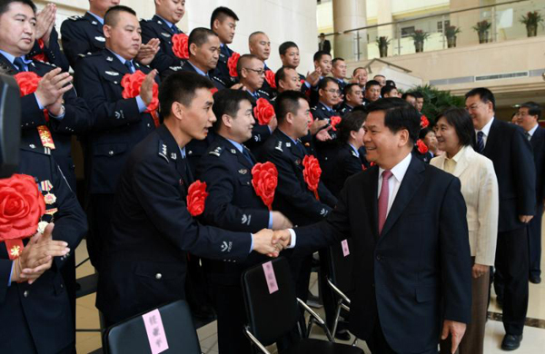 在5月19日举行的全国公安系统英雄模范立功集体表彰大会上,我区公安机关有19个集体和34名个人受到表彰。(内蒙古日报社融媒体记者戴宏)